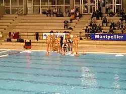 Le Montpellier Agglomération Handball en 2010.- Temps mort durant la Coupe de France de water-polo, en 2009.