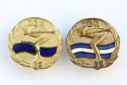 En natation, trois insignes de niveaux différents existent en RDA pour récompenser les performances des enfants et adolescents dans cette discipline. Aux niveaux 1 et 2, aucune limite de temps n'est imposée pour les longueurs, contrairement au niveau 3, pour lequel il faut respecter un temps minimum défini selon l'âge du nageur.