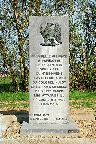 La stèle au 6e régiment d'artillerie à pied est un monument élevé sur le site du champ de bataille de Waterloo en Belgique à la mémoire du 6e régiment d'artillerie à pied français du colonel Hulot.