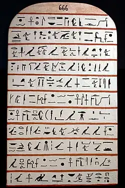 - ↑ Abd El Hamid Zayed, « Painted Wooden Stelae in the Cairo Museum », Revue d'égyptologie, no 20, 1968, p. 149–152, and plate 7.