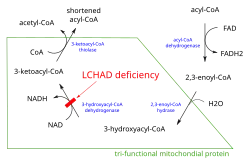 | Causes | Déficit en 3-hydroxyacyl-coenzyme A déshydrogénase des acides gras à chaîne longue |