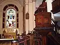 L'intérieur est divisé en nef et allées par des colonnes composites, la nef étant voûte en berceau. L'église étant trop sombre, une grande fenêtre est créée, mais elle est largement masquée[8] par l'orgue installé devant en 1764[7]. En 1820, une lanterne est ajoutée au centre du toit[8].