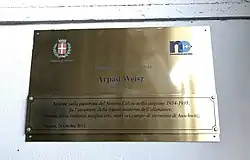 Le , une plaque commémorative est posée en hommage à Árpád Weisz[4], ancien entraîneur du club lors de la saison 1934-35 et mort dans un camp de concentration nazi à Auschwitz[5],[6].