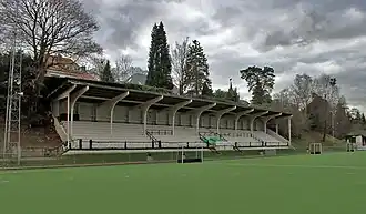 C’est en 1904, à l’initiative de Ch. Flasselaerts, président du club, que fut construite la première tribune (beton armé, verre et boiserie) en Belgique par les architectes Reilig et Hauman. Cette architecture remarquable et inédite pour l’époque était dotée de 1000 places assises.