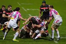 - ↑ « Deux activistes s'attachent sur les poteaux lors de Toulouse - Stade français », sur rugbyrama.fr (consulté le )