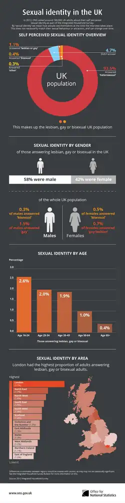 - ↑ « Sexual identity, UK », ons.gov.uk