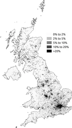 Depuis 1948, une immigration substantielle en provenance d'Afrique, des Antilles et du sous-continent indien est un héritage des liens forgés par l'empire britannique[9]. L'immigration en provenance des nouveaux États membres de l'UE en Europe centrale et orientale depuis 2004 s'est traduite par une croissance de ces groupes de population[10].