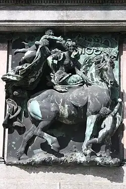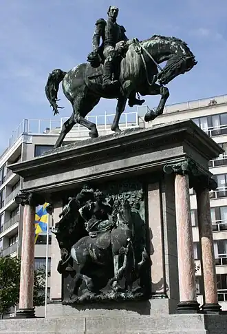 La statue équestre.- Le piédestal sur lequel se tient la statue.