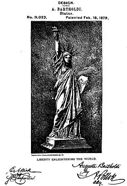 Le , Bartholdi obtient un brevet pour sa statue, le brevet D11,023[68],[69].