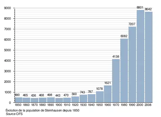 Le graphique suivant résume l'évolution de la population de Steinhausen entre 1850 et 2008[3] :