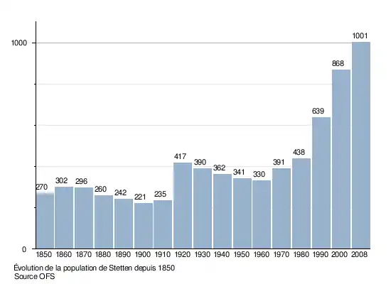 Le graphique suivant résume l'évolution de la population de Stetten entre 1850 et 2008[4] :