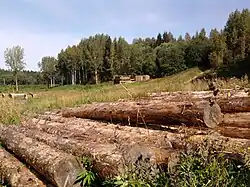 Le stockage des grumes à l'air libre est un mode de stockage des grumes. Il se fait généralement en piles croisées ouvertes et assure un séchage lent des grumes.