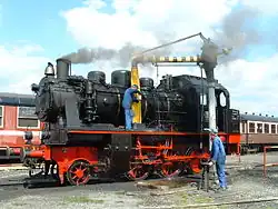 - La locomotive à vapeur BR 23.023 (1952) venant du Stoom Stichting Nederland.