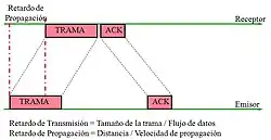 Un autre inconvénient survient lorsque le canal de transmission possède une forte latence, ce qui fait que le délai d'attente expire avant que la trame n'atteigne le destinataire (et donc que l'ACK atteigne l'émetteur). Dans ce cas, l'émetteur envoie une seconde fois le paquet et le destinataire reçoit deux copies de la même trame ; il envoie donc deux ACK. L'émetteur, qui s'attend à recevoir un seul ACK, en reçoit alors deux, ce qui pose problème s'il interprète le deuxième ACK comme étant destiné à la trame suivante.