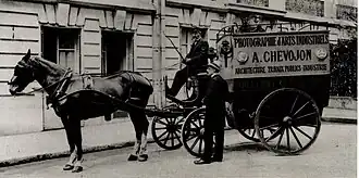 En 1861, Louis-Émile Durandelle (1839-1917) et Hyacinthe-César Delmaet (1828-1862) créent un atelier photographique à Paris, l'atelier de photographie Delmaet et Durandelle dont l'activité principale est la reproduction artistique industrielle et commerciale[4],[5]. Paul-Joseph-Albert Chevojon[Note 1] (1865-1925), entré comme opérateur-tireur, rachète le fonds de commerce en 1886, le matériel et les archives photographiques — soit dix mille plaques photographiques — dont celles de la construction de l'opéra Garnier —, et renomme l'entreprise « Studio Chevojon »[4]. Il poursuit l'activité en installant ses chambres photographiques près des grands chantiers parisiens de rues et de bâtiments entrepris par des sociétés renommées comme Moisant-Laurent-Savey et Cie (gare de Lyon, Grand Palais), Baudet-Donon, Ernest Pantz, Laloux (quai d'Orsay)[4].