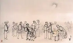- ↑ Suga Tatehiko est un nom japonais traditionnel ; le nom de famille (ou le nom d'école), Suga, précède donc le prénom (ou le nom d'artiste) Tatehiko.