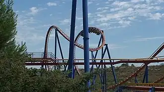 En sortant de la gare, on effectue un demi tour qui nous place sur le lift. En haut, et c'est unique chez les B&M, on enchaine pré-lift et descente droite. Ensuite on passe un loop, un immelmann, un Zero-g roll, un cobra roll, un camelback, des interlocked corkscrew et une hélix.