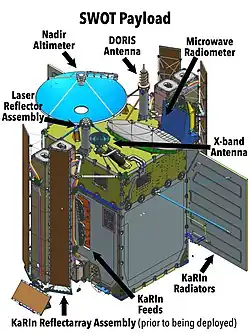 KaRIN (Ka-band radar Interferometer) est un altimètre reposant sur l'utilisation d'un radar à synthèse d'ouverture altimètre interféromètre fonctionnant en bande Ka. KaRIN comprend deux antennes radar situées à chaque extrémité d'un mât de 10 m permettant d'effectuer des relevés altimétriques sur une largeur de 120 km (2*60 km de part et d'autre d'une bande nadir de 20 km). La zone couverte comprend donc deux bandes, larges de 60 kilomètres, séparée par un intervalle de 20 kilomètres qui est pris en charge par l'altimètre Poseidon-3C. Compte tenu de la largeur du relevé effectué à chacun de ses passages, le satellite qui est placé sur une orbite géocentrique à 891 km effectue un passage sur l'ensemble des surfaces couvertes d'eau de la planète au minimum deux fois tous les 21 jours, et jusqu'à 7 fois aux latitudes extrêmes vues par le satellite, soit 77.6° Nord et Sud. L'instrument KaRIN est capable de réaliser des mesures sur les fleuves de plus de 100 m de large (voire on l'espère 50 m), ainsi que sur les étendues d'eau de plus de 250 m par 250 m, ceci avec une précision décimétrique. Il peut également quantifier les pentes avec une précision de l’ordre 1,7 cm/km[10].