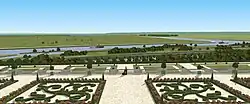 Restitution des jardins du château de Moreuil vus depuis le château, vers 1700.