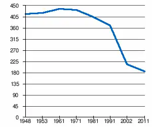 | 416 | 421 | 436 | 433 | 403 | 371 | 213[2] | 186[1] |