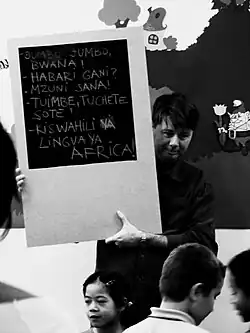 - ↑ Voir, entre autres, ces leçons de swahili sur youtube: https://www.youtube.com/user/kulmansam