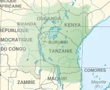 | Pays | Burundi, Comores, France (Mayotte), Kenya, Malawi, Mozambique, Ouganda, République démocratique du Congo, Rwanda, Somalie, Tanzanie |