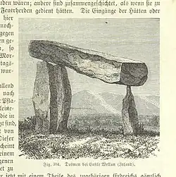 Les dolmens sont des édifices préhistoriques repris par les celtes, les dolmens celtes sont identifiables par leur utilisation du chiffre 3, en effet, force a été de constater que le peuple celtique plaçait les dolmens sur trois pierres et non deux comme il était aurait été simple de faire.