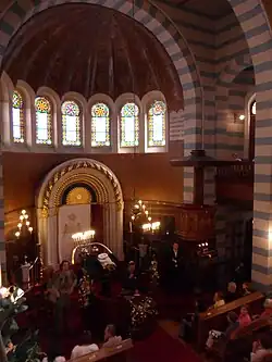 Par incidence, l'aménagement intérieur de la synagogue est aussi totalement revu. La bimah initialement prévue au centre de la salle et l'arche sainte (armoire contenant les rouleaux saints) sont désormais placés dans l'abside, à l'extrémité orientale de l'édifice. Quant aux bancs, ils sont disposés comme dans les églises chrétiennes. Bien sûr, toutes ces modifications assez tardives ont une conséquence majeure : l'adoption du rite réformé.