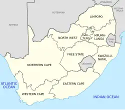 Les neuf provinces d'Afrique du Sud ont également leurs propres départements de l'éducation qui sont chargés de mettre en œuvre les politiques du « ministère » («Department») et de traiter les problèmes locaux.