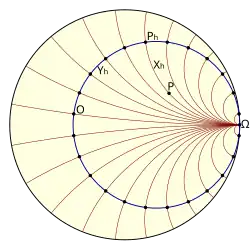 Un système analogue utilise un horocycle comme axe des ordonnées[2] : utilisant l'horocycle passant par l'origine et centré sur le point à l'infini de l'axe des abscisses (dans le disque de Poincaré), on associe à chaque point P le point Ph situé sur l'horocycle et sur la droite .