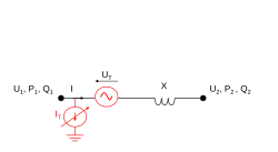 Où V1 et V2 sont les tensions aux bornes de la ligne, X la réactance de la ligne, et l'angle de transport, autrement dit le déphasage entre V1 et V2. Pour résumer, 3 paramètres sont importants : l'amplitude des tensions, l'angle de transport et l'impédance[5]. Pour les réseaux en courant alternatif, le contrôle lie la puissance active à la fréquence d'une part, et la puissance réactive au contrôle de la tension de l'autre[2].