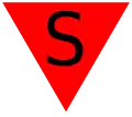 - Triangle rouge non inversé – un prisonnier de guerre ennemi (Sonderhäftling, signifiant détenu spécial), un espion ou un traître (Aktionshäftling, ce qui signifie détenu des activités), ou un militaire déserteur ou criminel (Wehrmachtsangehöriger, signifiant membre de la Wehrmacht).