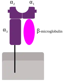 - le soi d'un individu est défini par des récepteurs du complexe majeur d'histocompatibilité (CMH, nommé HLA chez l'humain) présents sur la membrane de ses cellules, associés aux fragments peptidiques qu'ils présentent. Il existe deux types de molécule de CMH : le CMH de type I qui est présent chez presque toutes les cellules de l'organisme et le CMH de type II qui est retrouvé principalement chez les cellules dendritiques, les macrophages et les lymphocytes B ;
