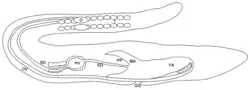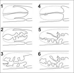 - Papille pénienne intra-antrale : une version beaucoup plus petite de la vraie papille pénienne, perçue comme une petite structure conique dans l'oreillette masculine, qui est principalement occupée par des plis irréguliers. On la trouve notamment dans les genres Amaga (en) et Endeavouria (en).