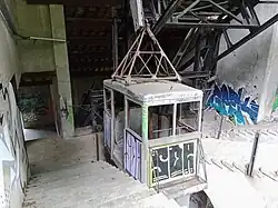 La verrière fermant l'ouverture par laquelle transitaient les cabines.