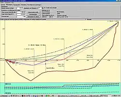 Dans le cas d'un téléphérique, les calculs sont différents, le principe de calculs est de déterminer la trajectoire du câble en résolvant l'équilibre statique du véhicule soumis à son propre poids et aux tensions des différents câbles (porteurs et tracteurs). La trajectoire d’un câble est calculée par les équations de la chaînette. Pour chaque abscisse de la ligne, une ordonnée est obtenue par résolution des équations. Dans le cas de câbles porteurs ancrés, le logiciel doit rechercher pour chaque position Y la tension qui permet de retrouver la bonne longueur de câble porteur (les calculs sont à mener pour les valeurs extrêmes des températures fixées par la réglementation).