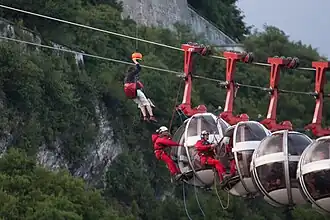Cependant, d'autres circonstances peuvent mettre en lumière l'installation comme en septembre 2001, où le funambule Freddy Nock a remonté le câble sur sa totalité en 34 minutes. Le câble avait dû être préalablement dégraissé et sa prestation initiale devait s'arrêter au pylône intermédiaire, mais l'artiste termina finalement le trajet jusqu'à la gare supérieure[23].