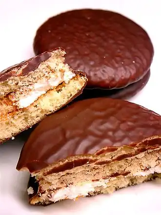 - Chocolate marshmallow pies est le nom générique aux États-Unis (Little Debbie par exemple, vend un produit appelé Chocolate Flavored Marshmallow Pies)[43] ;