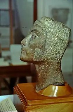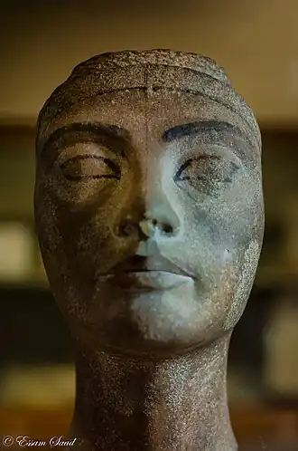 La Tête inachevée de Néfertiti, en quartzite brun, d'une hauteur de 35,5 cm, fut découverte en 1932 et est conservée au Musée égyptien du Caire depuis lors. Œuvre typique de l'art amarnien, ce portrait de la reine Néfertiti appartient à la XVIIIe dynastie et date du milieu du XIVe siècle av. J.-C.