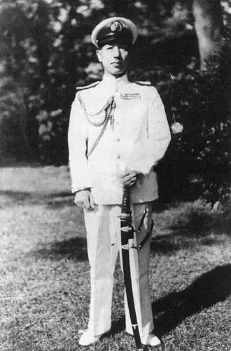 Descendant d'une famille de samouraïs, fils d'un principal de collège, il entre à l'école navale à 18 ans. Il est attaché au service des Affaires européennes de l'état-major naval. Il devient aide de camp du contre-amiral Sonosuke Kobayashi, qu'il accompagne au couronnement du roi Georges VI du Royaume-Uni en 1937, puis des amiraux Zengo Yoshida et Kiyoshi Hasega[1],[2].