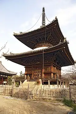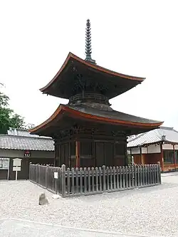 ![]() | Eifuku-ji (叡福寺多宝塔)[71] | 1652 | Taishi | Préfecture d'Osaka | 3 ken, toit de tuiles | BCP |