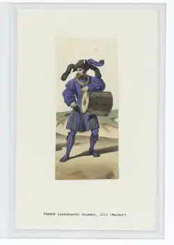 Les premiers tambours de l'histoire militaire de la France apparaissent en 1534 dans les légions de François Ier sous le nom de tambourins. Il en est prévu quatre par millier d'hommes. Ils constituent la musique de troupe de l'infanterie avec les fifres et plus tard, sous Louis XV, les clarinets. Les bandes françaises, qui succèdent aux légions, ont un ou deux tambours par bande. Sous Henri II, chaque bande a un tambour principal appelé tambour colonel qui fait porter sa caisse par un sous-tambour. Après la création des régiments d'infanterie française, le nom de « tambour » remplace celui de « tambourineur ». En 1667, l'ordonnance de Saint-Germain prévoit un tambour par compagnie en temps de paix et deux en temps de guerre. L'ordonnance du prescrit que les tambours feront table commune et dormiront ensemble dans le quartier, mesure renouvelée par l'arrêt du 29 floréal an VII. Cependant, à partir de 1792, on les mettra plutôt à la table ordinaire de leur compagnie[1].