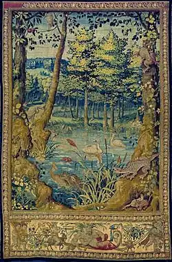 - Paysages et scènes animales, aussi appelés verdures (numéros d'inventaire du musée du Wawel 19—78), créés aux alentours de 1560 d'après des cartons d'un artiste anonyme du cercle de Pieter Coecke van Aelst (parfois associé à Willem Tons).