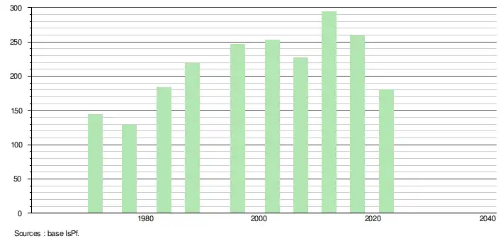 - ↑ pour les années 1983, 1988, 1996, 2002, 2007, 2012, 2017 et 2022
