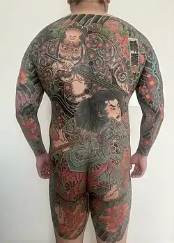 Le tatouage a été légalisé en 1945 par les forces d'occupation mais a conservé son image en rapport avec la criminalité. Pendant plusieurs années, les tatouages traditionnels japonais ont été associés aux yakuzas, la fameuse mafia japonaise, et beaucoup d'entreprises au Japon (comme les bains publics, les clubs de fitness ainsi que les sources chaudes) refusaient encore les clients portant des tatouages.