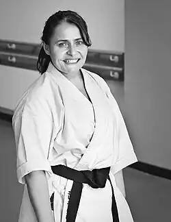 - ↑ Ce qui fait d'elle, en karaté de style wado-ryu, la femme la plus haut gradé au monde.