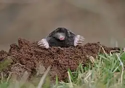 - Une taupe émerge de sa taupinière