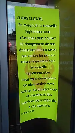 Certaines enseignes ont rencontré des difficultés pour tenir à jour leurs étiquettes à la suite des changements de prix qui ont suivi[8].