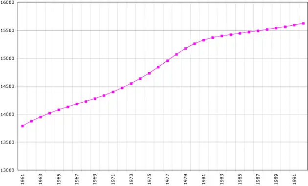 Évolution de la démographie entre 1961 et 1992 (chiffre de la FAO, 2005). Population en milliers d'habitants.
