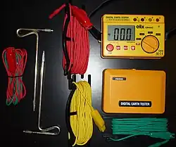 En France, les décrets du instaurent l'obligation de réunir les carcasses métalliques des machines électriques à la terre pour les tensions supérieures à 150 volts[1]. Ceci conduit à la nécessité de mesurer convenablement la valeur de la résistance des terres. Le telluromètre (ou ohmmètre de terre ou contrôleur de terre) est l'appareil de mesure destiné à cette utilisation.